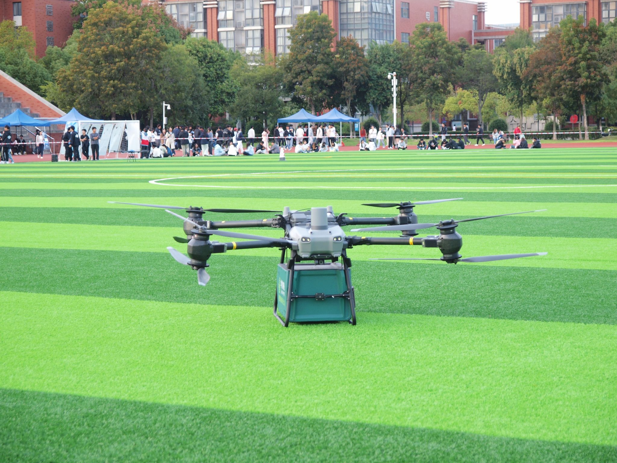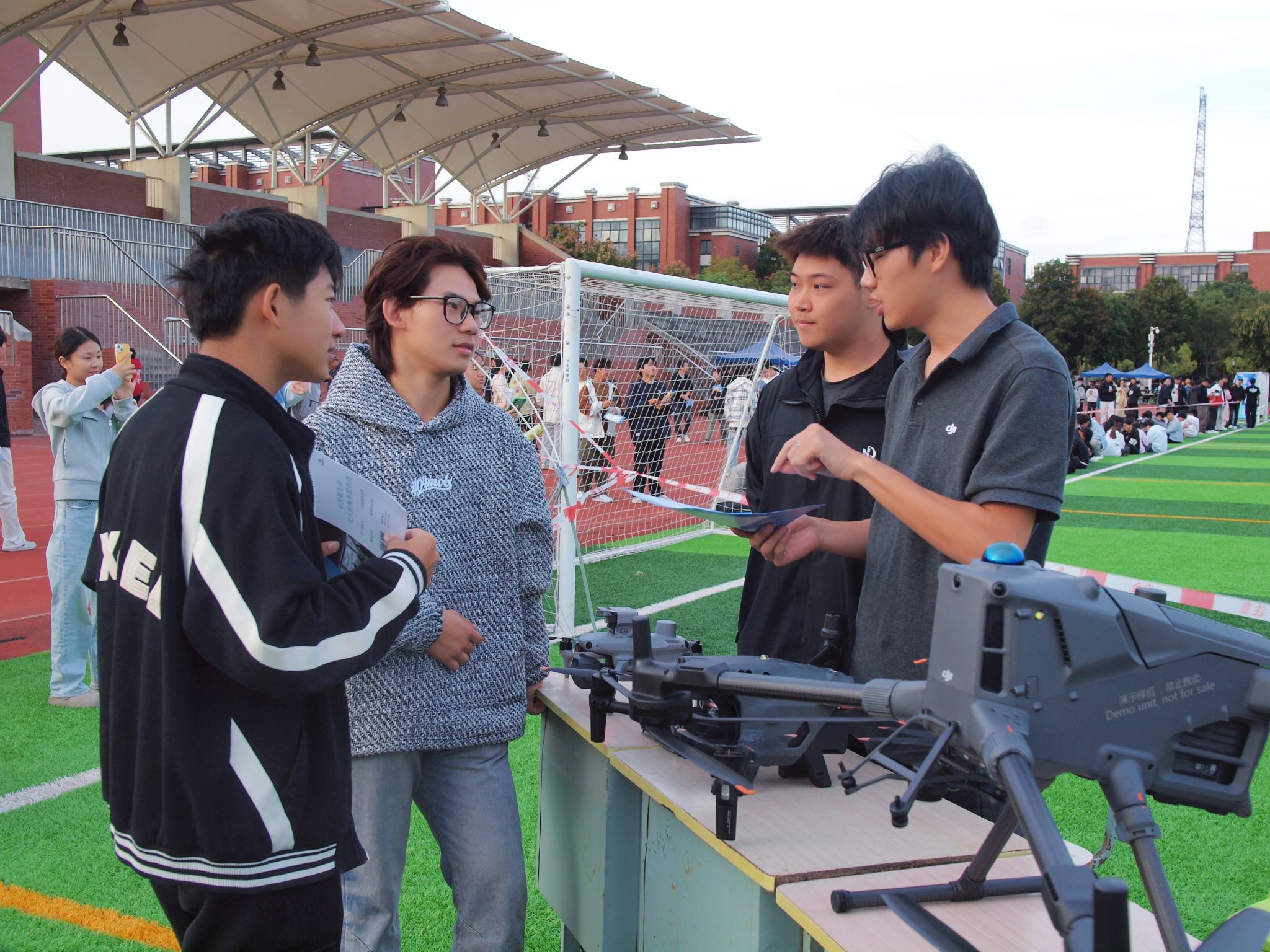 10月29日,学校在东操场面向全校师生举办无人机科技展演活动,活动由我校数微学院、苏州启航航空科技有限公司共同承办。无人机清洗演示精准高效,运载物流与无人化值守机场生动呈现了智能化作业场景。数微学院还进行了2026年技能大赛动员,通过前沿科技展示与实战竞赛动员相结合的形式,营造了“以展促创、以展促赛、以赛促学”的良好校园氛围。
