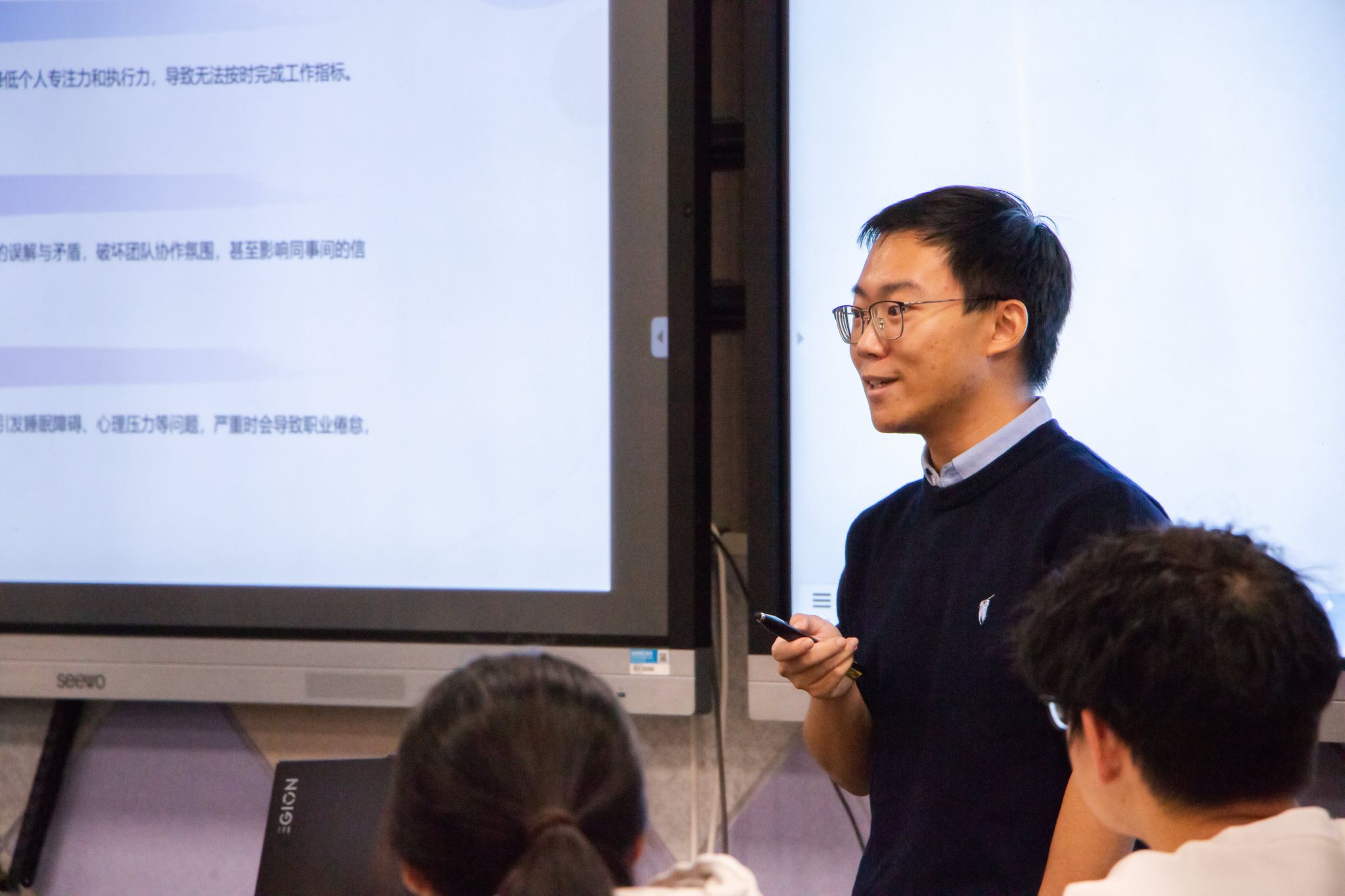 为助推青年教师尽快站稳站好讲台,提升教书育人核心能力,我校于11月15-16日在图书馆智慧教室举办了2025年青年教师课堂教学比赛。28位青年教师参加比赛,校党委书记钱锦东到场观摩,全体2025年新进青年教师在一旁观赛。