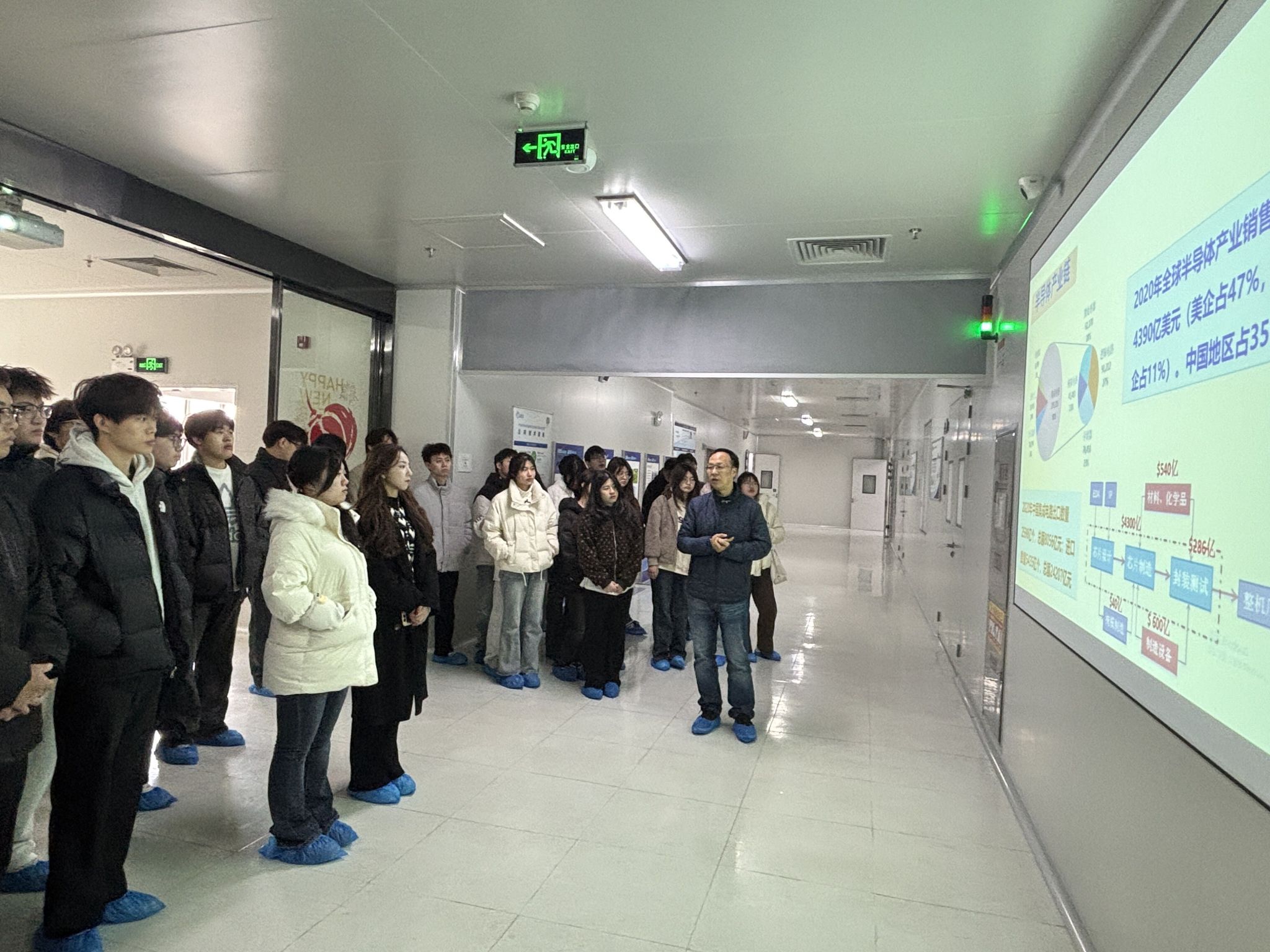 12月16日上午,我校组织学生前往中科纳米所开展学习实践活动。活动中,中科纳米张家港化合物半导体研究所执行所长朱杰为同学们作了“化合物半导体技术与应用”专题讲座,系统讲解了半导体技术从硅基时代到宽禁带材料的发展脉络,重点剖析了氮化镓、碳化硅等化合物半导体在5G通信、新能源等领域的应用前景。讲座后,师生们深入研究所实验室进行实地参观,朱所长现场讲解了材料制备、器件加工等关键工艺流程与科研设备。通过理论讲解与实地观摩相结合的方式,同学们不仅深化了对前沿技术的理解,更直观感受到科技创新与产业应用的紧密联系。此次活动有效拓宽了学生的专业视野,增强了实践认知,是学校深化产教融合、提升人才培养质量的重要举措。