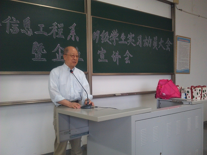 9月24日,周六上午8:30分电子信息工程系在E204召开了09级毕业班学生实习动员大会,会议先由电信系副主任温一军副教授做了全面的实习动员,讲解了实习的目的和指导思想。会议期间我院名誉院长,中国工程院院士、张家港智能电力研究院院长韩英铎教授带领研究院副院长兼柔性输配电技术研究所所长刘建政教授、研究院院长助理韩慈教授、智能电网芯片技术研究所所长周逊伟博士及智能电网芯片技术研究所俞金山主任等专家一行5人来到了动员大会现场对09级毕业班学生作就业指导及对部分在研究院实习的学生进行实习面试。