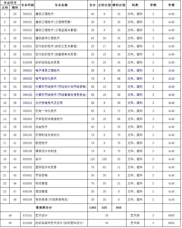 2012年沙洲职业工学院分专业招生计划