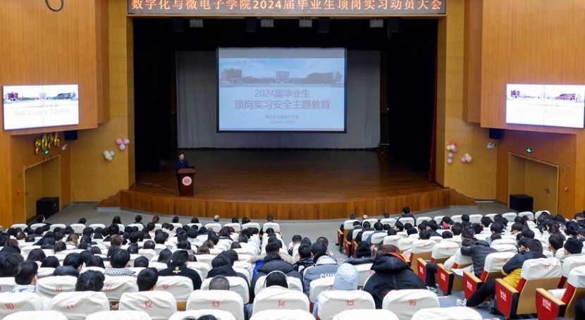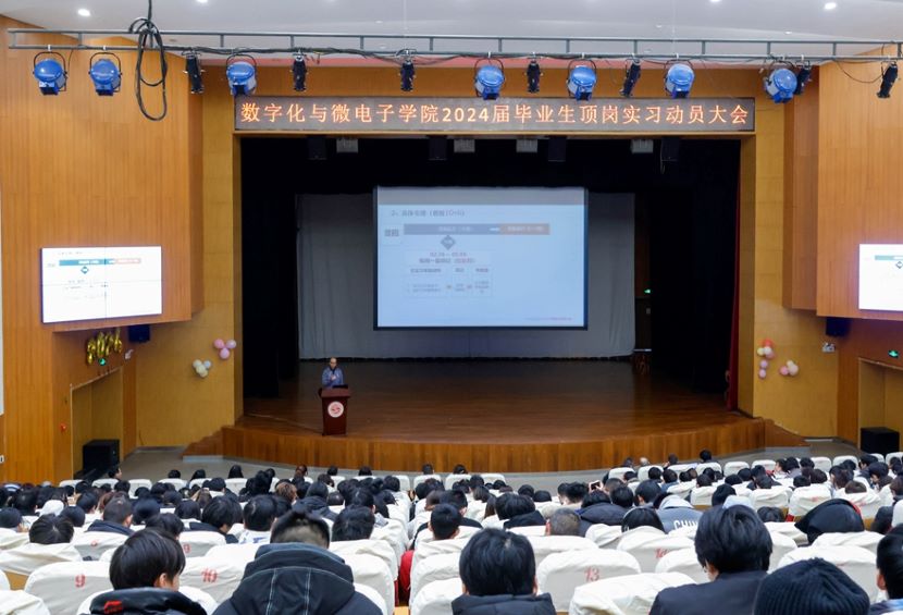 为了提高学生对顶岗实习的正确认识,引导学生树立正确的实习观念,强化安全责任意识,1月3日下午,数字化与微电子学院在大学生活动中心召开2024届毕业生顶岗实习动员大会。数字化与微电子学院2024届毕业生、全体教师和部分企业代表参任参加了本次会议。