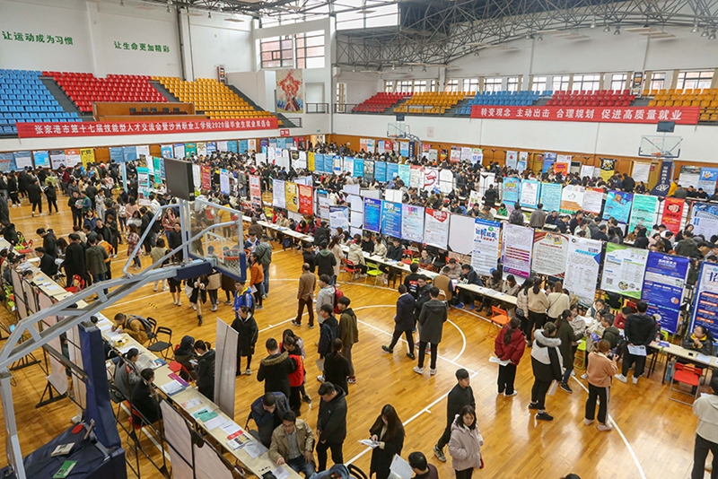 11月30日,“张家港市第十七届技能人才招聘会暨百校联动——沙洲职业工学院2020届毕业生就业双选会”在我院体育馆举办。本次大会到会企业260余家,提供岗位4000多个,其中有江苏沙钢集团、江苏永钢集团、张家港浦项不锈钢有限公司、江苏国泰集团、江苏东渡纺织集团有限公司、张家港扬子纺纱有限公司等500强企业,以及苏州海陆重工股份有限公司、江苏金陵体育器材股份有限公司、苏州金鸿顺汽车部件股份有限公司等上市公司。提供岗位涉及汽车、机械机电、纺织、化工、建筑、酒店旅游管理等专业。
