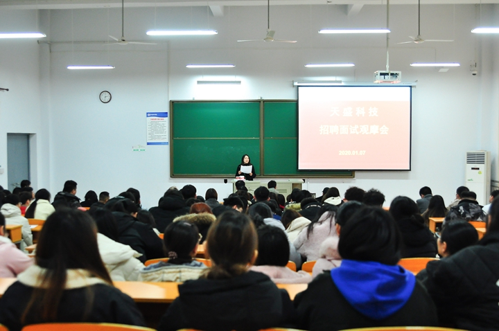 首先,天盛科技行政人事部胡文总监在D201教室为电信系2020届毕业生从公司实力、团队氛围、岗位需求、公司福利等方面作了介绍,同时诚挚邀请具备专业实力和工作热情的电信系毕业生加入公司团队,在提升专业实践能力的同时,实现自身人生价值。