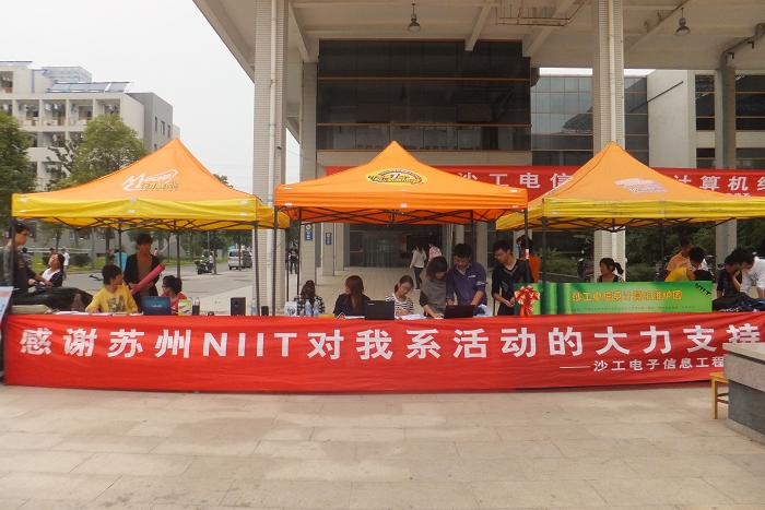 9月28日上午,电子信息工程系举办的第二届电脑维护周在第一食堂门口举行。