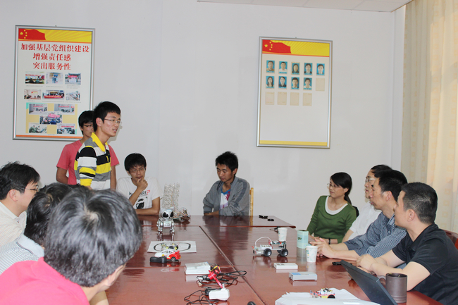 电信系副主任温一军副教授主持了此次活动,首先他对教务处领导的光临表示感谢,然后由许礼捷副教授对网页制作大赛中评奖入围作品利用投影仪进行了展示和介绍,各个获奖作品获得在场的各位老师一致好评。11级电子、电气专业学生分别展示了各自的作品,对各位老师提出的问题进行了答辩。在陈述过程中学生也讲到,通过这样的实践活动增强了自己的信心,提高了自己的动手能力,开拓了自己的设计思路。